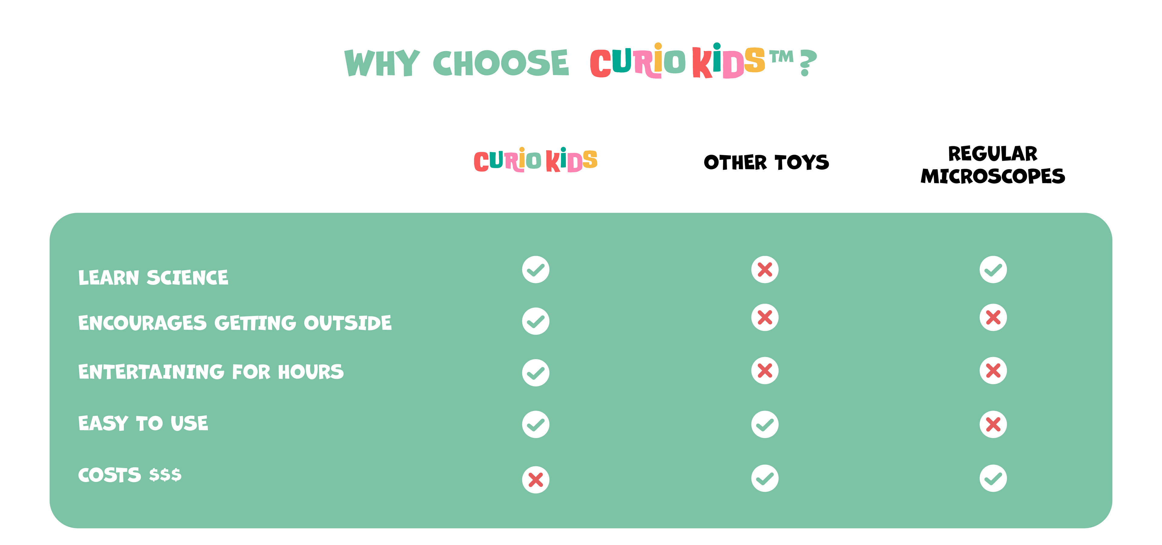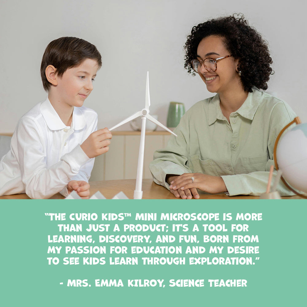"As a science teacher and a mother, I've always been concerned about the amount of screen time kids get these days. That's why I created the Curio Kids™ Mini Microscope. I wanted to give them a reason to look away from their screens and discover the joys of exploring the world around them. It's heartwarming to see my own children and students getting excited about the little wonders they find."