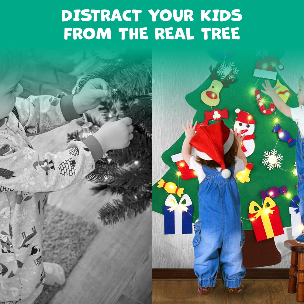 The Curio Kids™ Felt Tree is designed with easy-to-handle ornaments, allowing your little ones to decorate and redecorate all season long. It’s the perfect distraction from your real Christmas tree—no broken ornaments, no injuries, and absolutely toddler-safe materials with no swallowable pieces.
